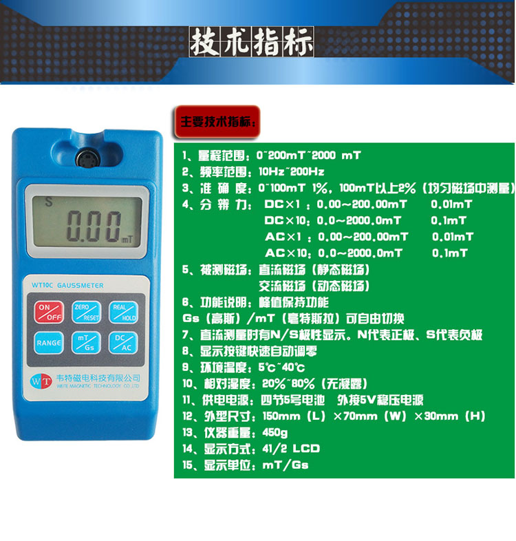 数字特斯拉计WT10C高斯计 交直流两用型 残磁 剩磁测试仪